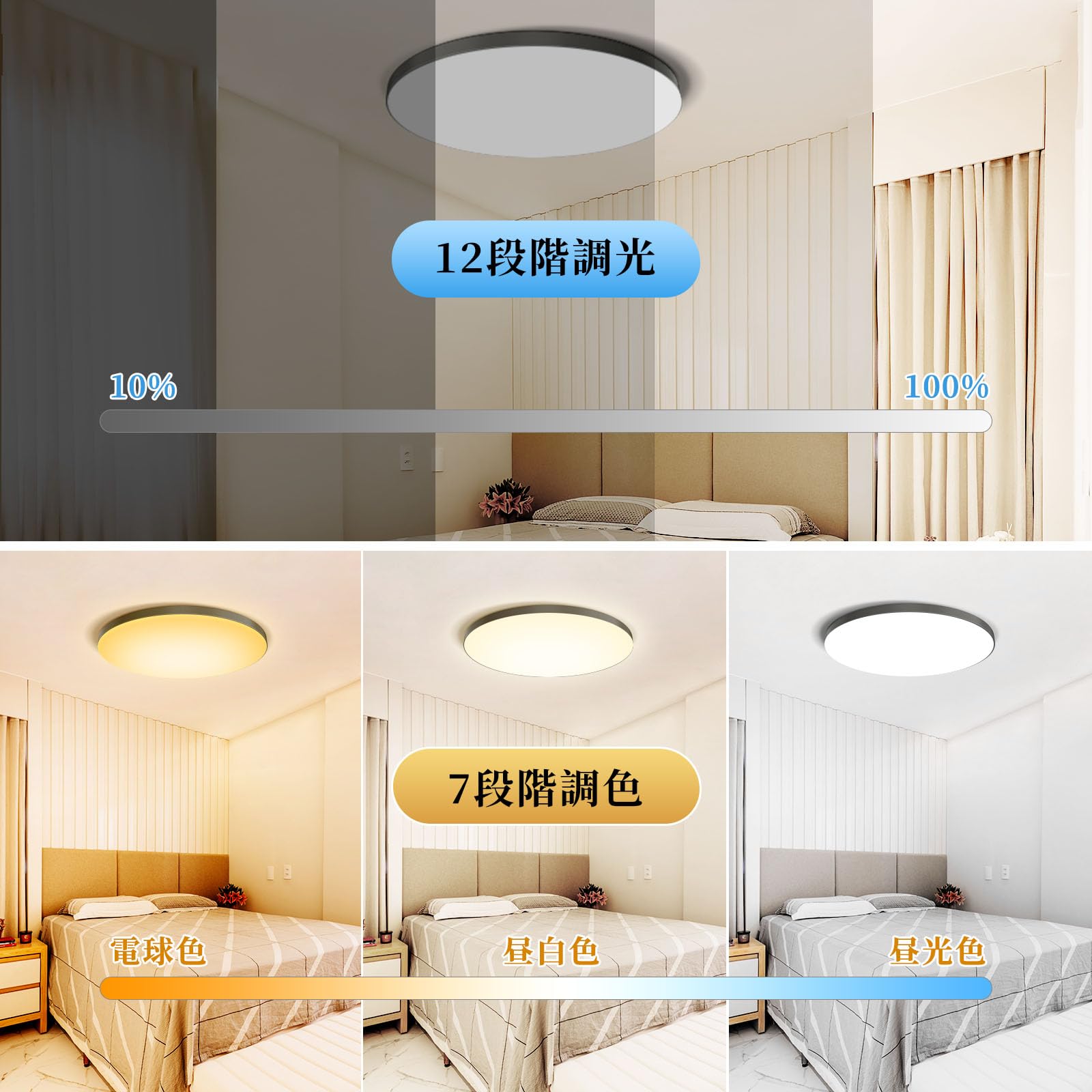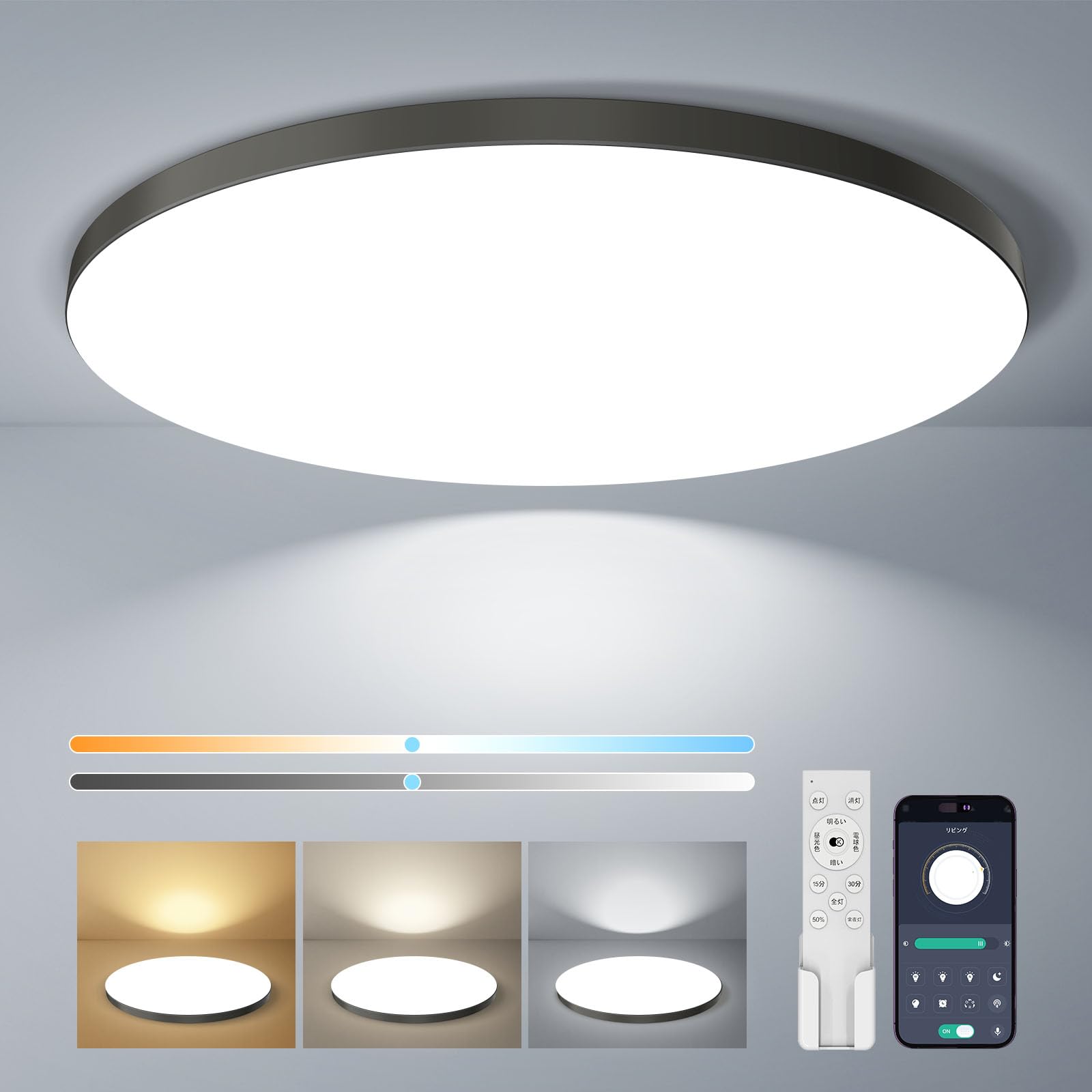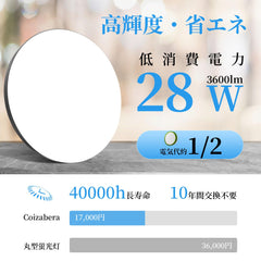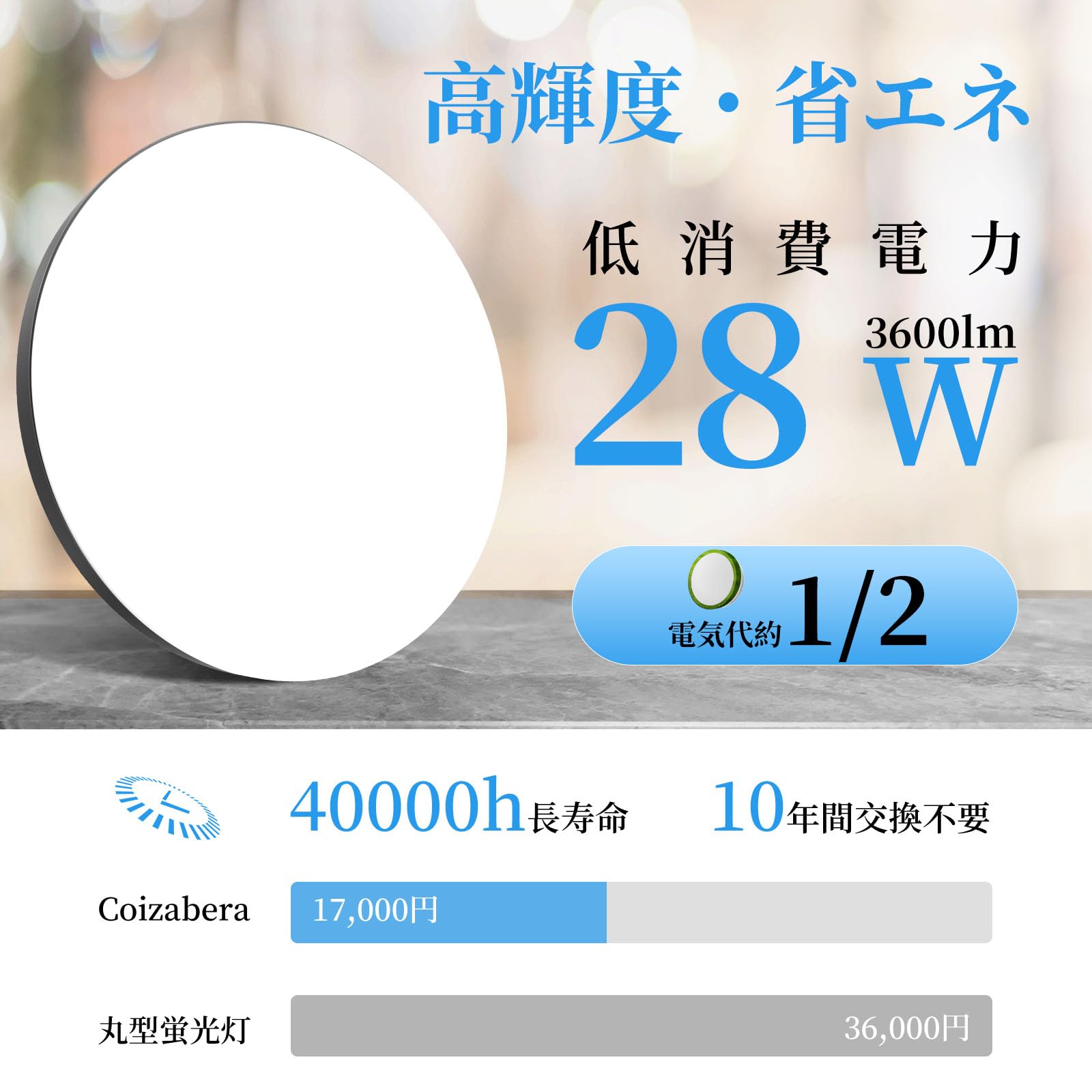 【日本国内在庫24 時間発送】Coizabera 28W 3600lm 調光調色 LED シーリングライト|6 畳~8 畳対応 極薄ブラックフレーム おしゃれデザイン|豆電球常夜灯付き 三段調光・三段色温度(2700K~6500K)|省電力・高輝度 リビング / キッチン / 寝室 / 玄関 / 台所適用