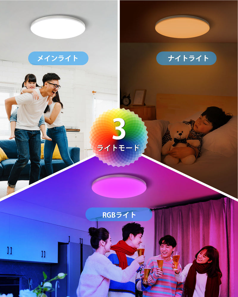 取り付けが簡単で、明るさや色温度もリモコンで自由に調整できるのが便利です。RGBムードライト機能があり、部屋の雰囲気を気分に合わせて変えられます。デザインも北欧風でおしゃれ。寝室やゲーム部屋にぴったりの照明だと思います。