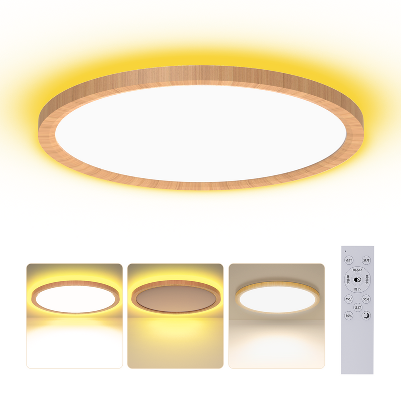 Coizabera LED シーリングライト10畳40W和風木目調デザイン調光調色間接照明常夜灯5200lm超薄型木枠雰囲気夜灯リモコン&スマートフォン APP 操作和室・寝室・書斎・リビング・玄関・キッチン・廊下適用